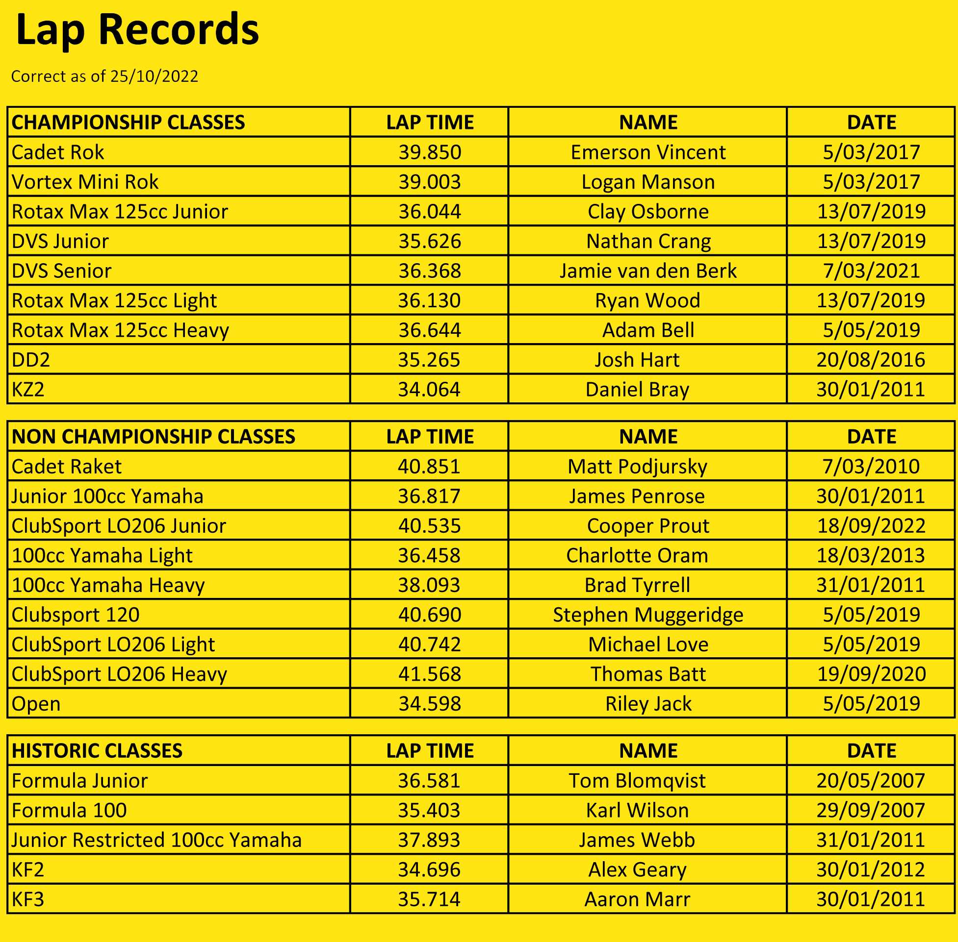 Track records are only awarded at meetings where a Kartsport NZ appointed Technical Officer is listed on the event permit.